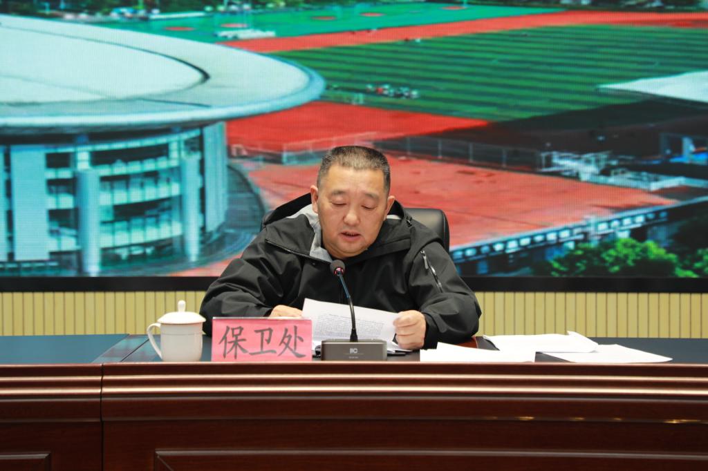 会议上,保卫处处长赖刚同志领学习近平总书记关于安全生产的重要论述,传达省教育厅校园安全工作提示精神,围绕隐患排查、电信诈骗、安全教育、校园管理、家校协同等方面,对学校近期安全稳定重点工作作出具体安排部署。