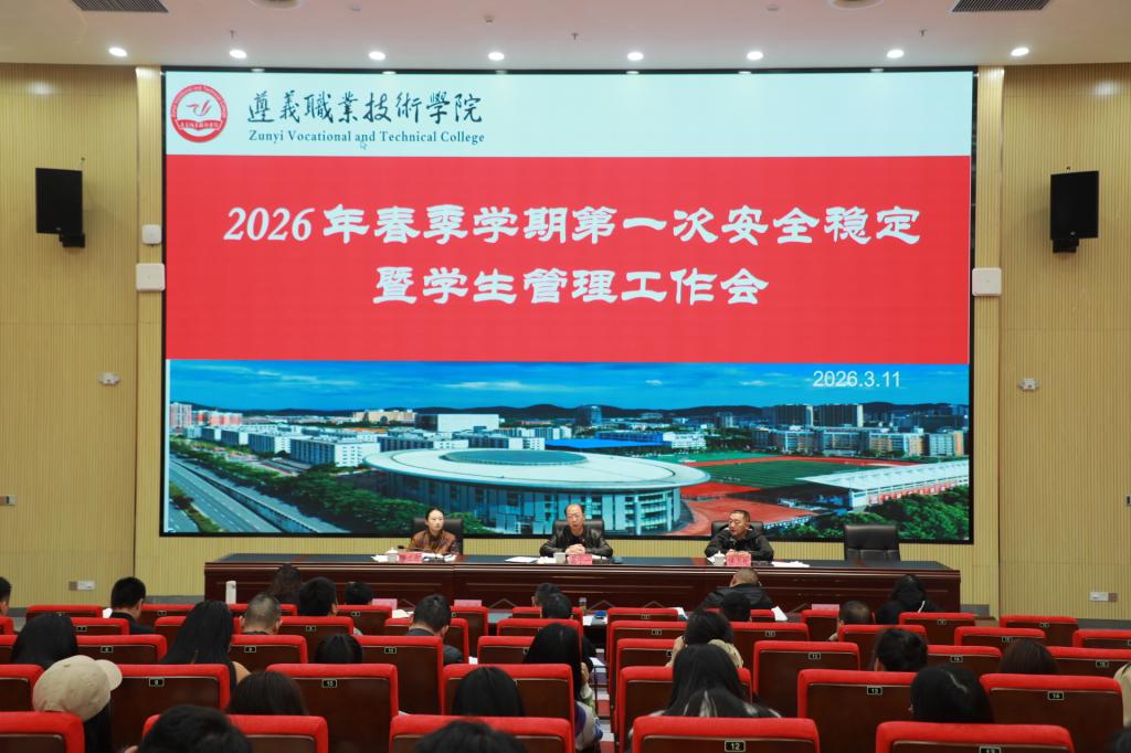 2026年3月11日14时30分,我校在新图书馆108学术报告厅召开校园安全稳定工作会议。党委委员、副院长葛宁一主持会议并提工作要求,各相关部门、产联体、幼儿园、物业公司负责人,各教学系(院)相关负责人及辅导员,学工部(团委)、保卫处全体人员参会。