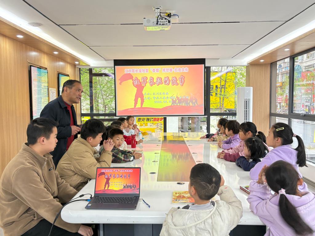 遵义市关工委宣讲团成员、遵义市教体局关工委副主任、遵义职业技术学院关工委常务副主任、副教授、退休教师申卡辉应共青团汇川区委邀请,为汇川区“春假公益托管班”义务宣讲红色故事。在共青团汇川区委统一安排下, 申卡辉老师利用4月1-3日三个上午,分别为乌江恬苑社区、长征社区、宁波路社区数十名中小学生宣讲红色故事。申老师精心选取“四渡赤水出奇兵”、“突破乌江”、“寻找遵义会议会址”、“枫香坝的‘活菩萨’”等红色小故事,采用“故事讲述+影像观看+互动分享”的沉浸式教学模式,紧密结合遵义红色圣地的地域特色,用通俗易懂的语言、声情并茂的演绎,将革命先辈们不畏艰难险阻、坚守爱国初心、勇于担当奉献的精神娓娓道来。孩子们个个神情专注、认真聆听,在潜移默化中接受红色精神熏陶,厚植爱党爱国爱家乡的情怀,让红色基因、革命薪火代代传承。