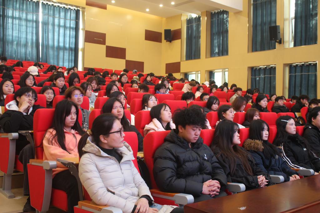 人文旅游系部分老师、人文旅游系旅游酒店管理专业、各教学系(院)近200名学生代表参听报告。