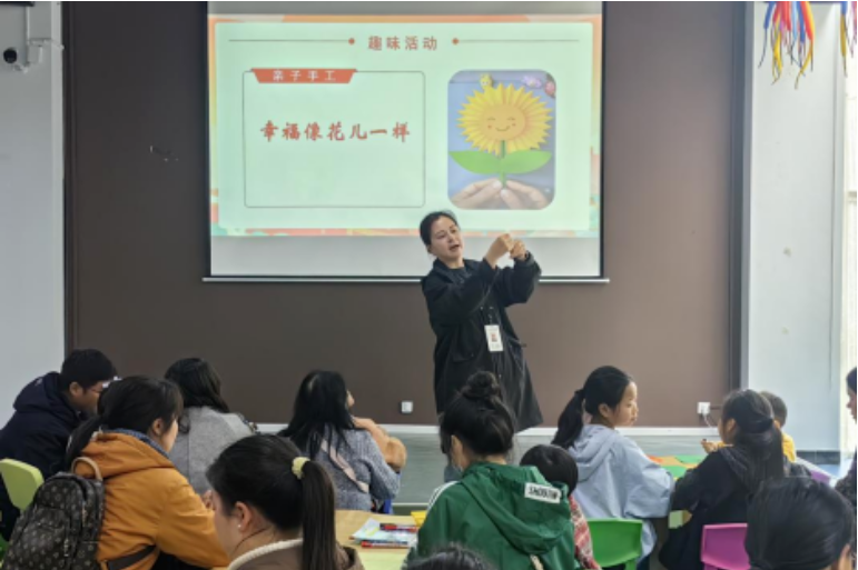 聆听红色故事、学习红色知识之后,迎来了温馨有趣的亲子手工环节——“幸福像花儿一样”。工作人员为每组家庭准备了五颜六色的手工材料,家长与孩子携手合作,剪、贴、折、粘,默契配合,一步步将零散的材料制作成一朵朵精致的花朵。孩子们发挥想象力,用自己的小手精心创作,脸上洋溢着幸福的笑容,每一朵手工花都承载着孩子们对幸福生活的美好祝福。在动手实践的过程中,不仅锻炼了孩子们的动手能力和创造力,更增进了亲子间的情感交流,让红色教育与温情陪伴完美融合。