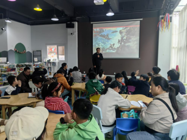 活动伊始,市关工委宣讲团成员、职院副教授申卡辉老师带着饱满的热情,为现场的家长和孩子们带来了经典红色故事《突破乌江》。申老师用生动通俗的语言、声情并茂的讲述,将红军战士不畏艰险、勇往直前、突破乌江天险的革命壮举娓娓道来。孩子们目不转睛、认真聆听,在跌宕起伏的故事情节中,真切感受到革命先辈不怕牺牲、奋勇向前的崇高精神,红色的种子在稚嫩的心田悄然种下。在红色知识问答互动环节,申老师围绕《突破乌江》故事内容、革命英雄事迹等设置趣味题目,孩子们积极举手、踊跃抢答,现场气氛热烈又欢快。家长们也纷纷参与其中,和孩子一同思考、共同作答,在亲子互动中重温红色历史,不仅让孩子们轻松掌握了基础的红色知识,更让爱国爱党的信念在欢声笑语中得到深化。