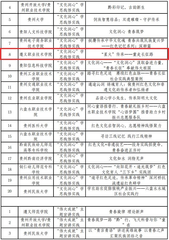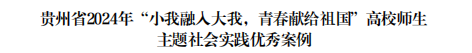 2024年,贵州省教育厅组织开展了2024年“小我融入大我,青春献给祖国”高校师生主题社会实践活动,我院宣传部、学工部、马克思主义学院联合组织开展的《“星火”传承——重走长征路》活动案例和现代农业系申报的《“乡村振兴”学农支农实践》入选2024年“小我融入大我,青春献给祖国”高校师生主题社会实践优秀案例。