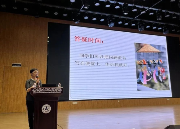 互动环节中,还组织同学们开展了匿名便签的小活动,同学们在便签上匿名写下自己在学习、人际交往或情绪管理等方面遇到的困扰。覃丽博士仔细阅读每一份留言,并结合自身经验,以幽默而真诚的方式一一回应。从“如何缓解焦虑”到“怎样建立自信”,再到“平衡学业与生活的技巧”,不仅提供了实用建议,更鼓励同学们以积极心态面对挑战。