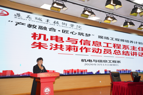 最后,系主任朱洪莉作动员总结讲话。她首先对姜涛大师的精彩分享和企业的大力支持表示衷心感谢。朱主任指出,启动现场工程师培养计划是我系推进教育教学改革、提升人才培养质量的关键举措,她希望全体师生以此为契机,深刻理解工匠精神的内涵,积极参与到计划中来,努力成为符合新时代发展需求的优秀现场工程师,为服务地方经济发展贡献力量。