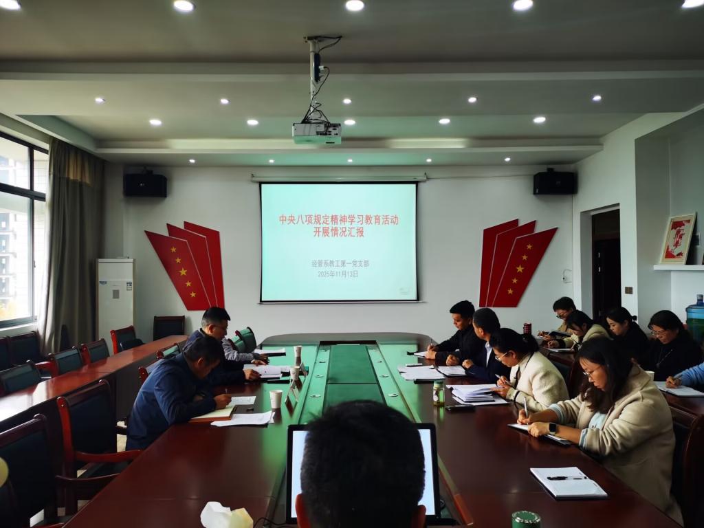 2025年11月13日,覃晓龙院长到经济管理系调研党建支部工作。学院党政办主任杨超、工作人员钱璐、经济管理系主任杨利民、系专职副书记李龙慧、系办公室主任张微、系专职组织员廖清及系教工第一支部部分教师党员参加,会议由经济管理系党总支书记王斌主持。