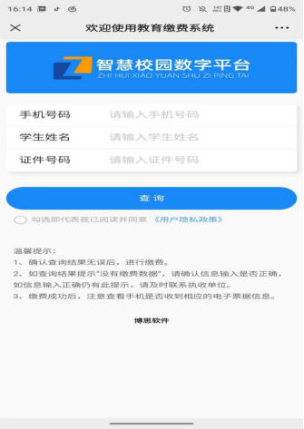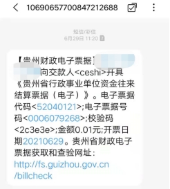 第六步:如果学生的号码填写无误,缴费完成后电子票据会自动下发到该手机信息上,点击查验网址,输入信息就可以查看到电子票据