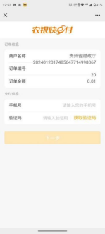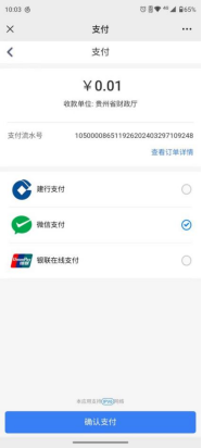 第四步:点击支付会有三种支付方式 (农行聚合支付,贵阳银行,建行h5)