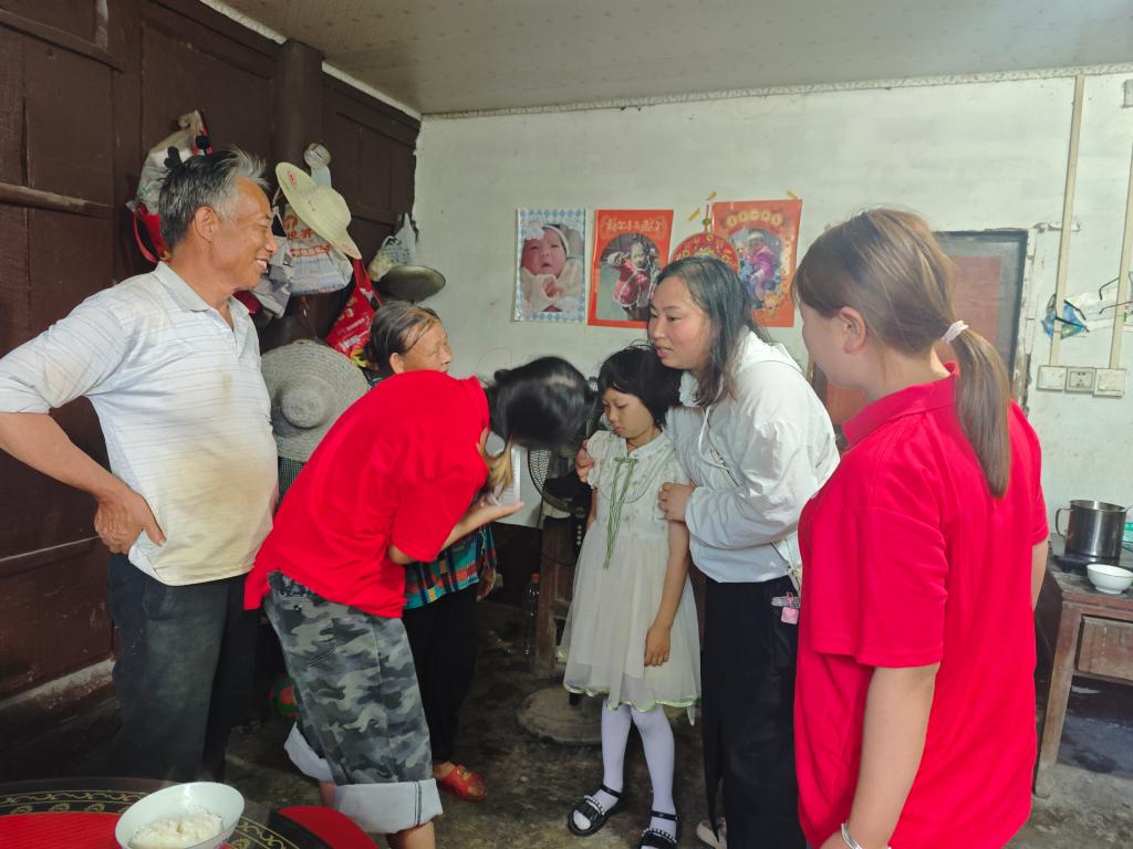 针对村内的留守儿童,教师带领志愿者们前往留守儿童家中,为儿童们送上可爱的书包,为孩子们提供学习上的帮助和心灵上的慰藉。通过陪伴与交流,缓解孩子们的孤独感,助力他们的身心健康。