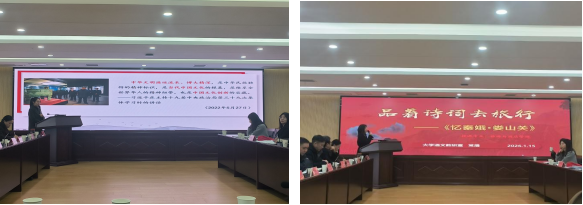 在教学展示环节,党员黄克鸣、常熳同志分别以《传承发展中华优秀传统文化》《品着诗词去旅行——<忆秦娥・娄山关>》为题进行教学示范,充分展现了党员教师将红色文化、传统文化融入课堂教学的实践探索。李珏、杨倩两位同志进行专业点评,教务处副处长王云同志作总评,为后续教学优化提出了针对性建议。