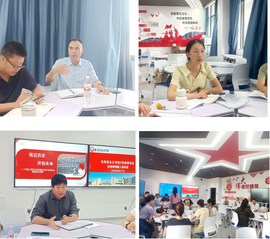 9月16日下午,马克思主义学院在思政仿真体验教学中心(仁慧楼402)组织召开本学期第一次教研活动:抗战精神融入思政课教学集体备课会。会议由思想道德与法治课教研室主任许婷婷同志主持,全体思政课教师参加了集体备课。