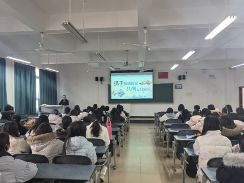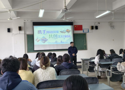 12月6日,党委委员、组织人事处处长黄磊为人文旅游系学前教育专业D252、D253班学生讲授《携手周边国家 共创美好未来》专题。