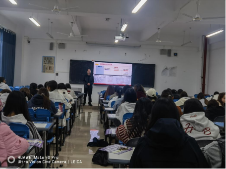 12月1日,党委委员、副院长温龙岚为经济管理系财务管理专业D252、D253班学生讲授《决胜‘十四五’奋发向前行》专题。