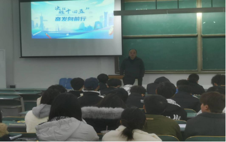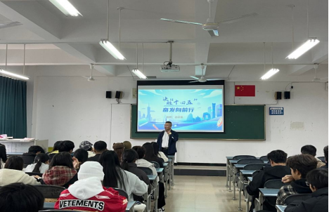 11月11日,党委委员、纪委书记田聪为人文旅游系土木工程检测技术专业D251班学生讲授《决胜‘十四五’奋发向前行》专题。