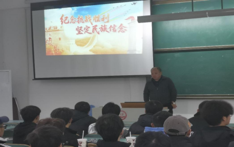 11月10日,党委委员、副院长葛宁一为人文旅游系婴幼儿托育服务与管理专业D252、D253班学生讲授《纪念抗战胜利 坚定民族信念》专题。
