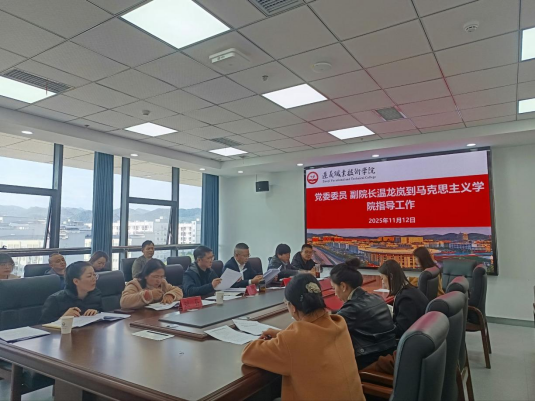 11月12日,学院党委委员、副院长温龙岚到马克思主义学院开展专项调研,就思政课教学提升行动、近期听课看课及集体备课工作进行指导部署。会议由马克思主义学院负责人彭国刚主持,全体思政课教师参加。