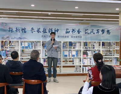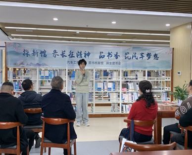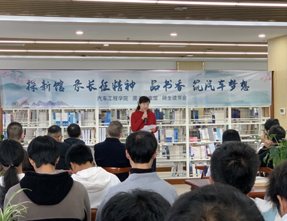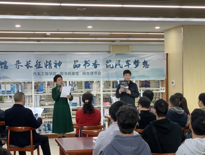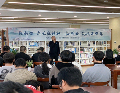 读书分享环节,图书档案馆罗敏老师为大家推介多本与汽车专业相关的优质书籍,从汽车技术发展历程到前沿科技应用,从专业理论学习到实践能力提升,为大家的专业阅读提供了清晰索引。汽车工程学院王利老师分享经典红色著作《红星照耀中国》,他结合书中生动的历史场景与感人的革命故事,深入解读长征精神的时代内涵,引导大家从革命先辈的奋斗历程中汲取攻坚克难、勇毅前行的精神力量。