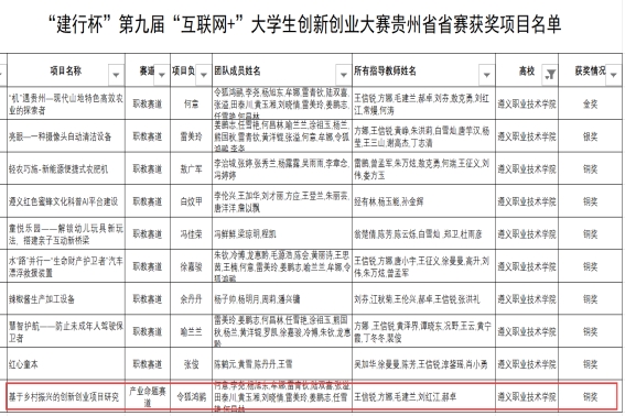 5.2023年9月,王信锐老师指导的《基于乡村振兴的创新创业项目研究》获第九届“互联网+”大学生创新创业大赛贵州省省赛铜奖 |