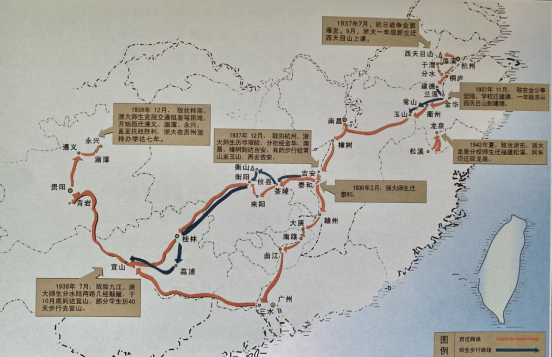 1939年4月到1942年11月,丰子恺追随浙大西迁,先后执教于广西宜山和贵州遵义,任讲师、副教授,讲授艺术教育和艺术欣赏等课程。他在遵义浙大任教近三年的时间里,参与浙大校歌歌谱审定,绘成《子恺漫画全集》,并创作大量抗战题材的漫画,他还与赵乃康、李瑜等在拜谒“沙滩文化”代表人物郑珍、莫友芝、黎庶昌陵墓后,编纂《子午山纪游册》,此书被后人称作“民国时期的兰亭集”。