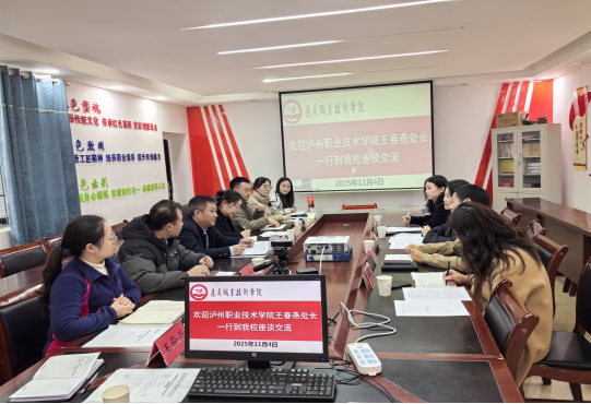 11月4日,泸州职业技术学院组织人事处副处长王春燕一行4人到遵义职业技术学院现代农业系就党建工作进行座谈交流,旨在借鉴标杆院系建设经验,助力本校相关院系党建工作提质增效。