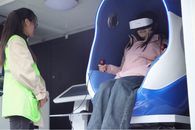 同学们通过VR设备体验工伤环境
