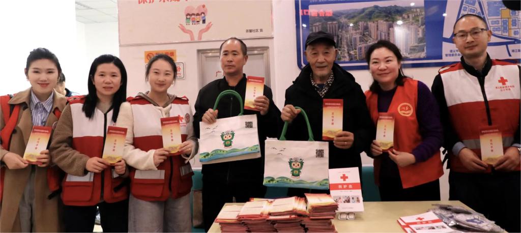 在急救知识宣传点,志愿者借助人体模型,现场演示心肺复苏、海姆立克急救法等实用技能,并发放急救知识手册,帮助老人与社区居民掌握基本救护方法,提升自救互救能力。