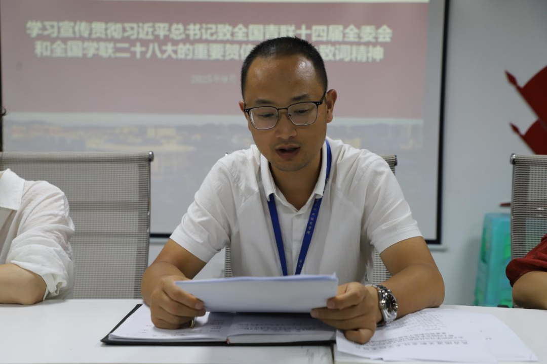 会议伊始,由团委书记罗澜领学习近平总书记重要贺信和党中央致词精神。习近平总书记的贺信饱含着对广大青年和青年学生的深切关怀与殷切期望,为青年成长成才和青联学联事业发展指明了方向。党中央致词也进一步强调了青年在新时代新征程中的使命担当,鼓励青年积极投身强国建设、民族复兴的伟大实践。