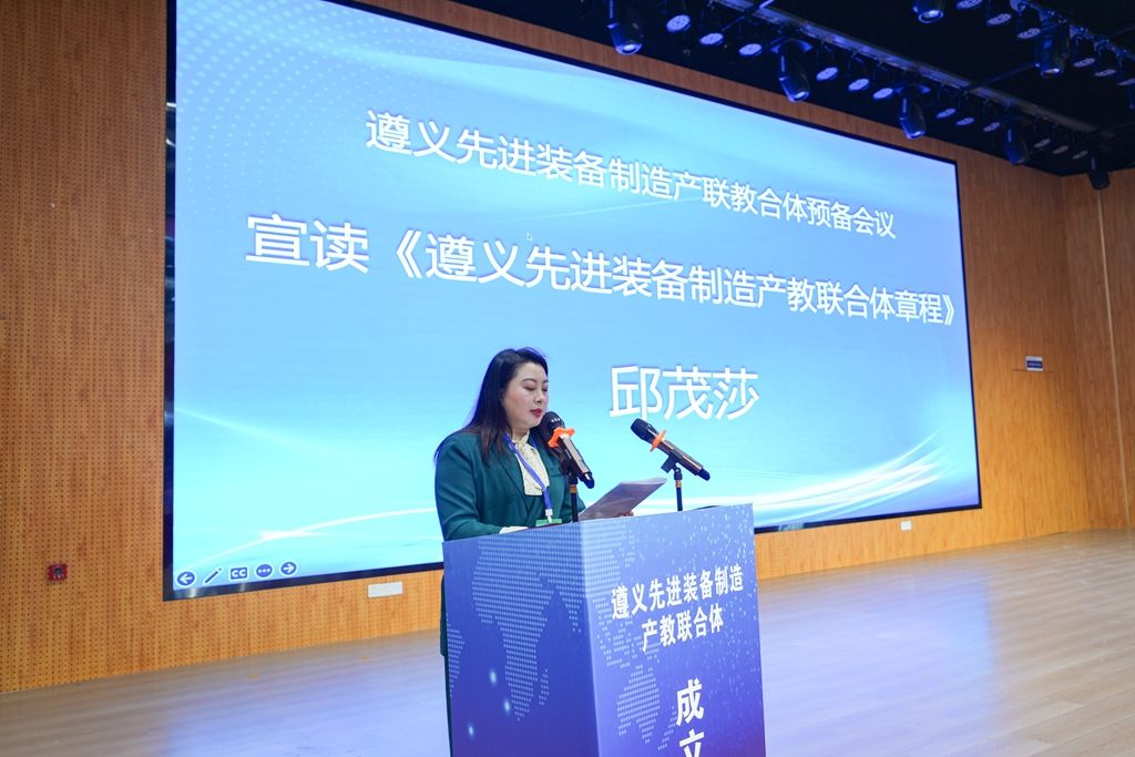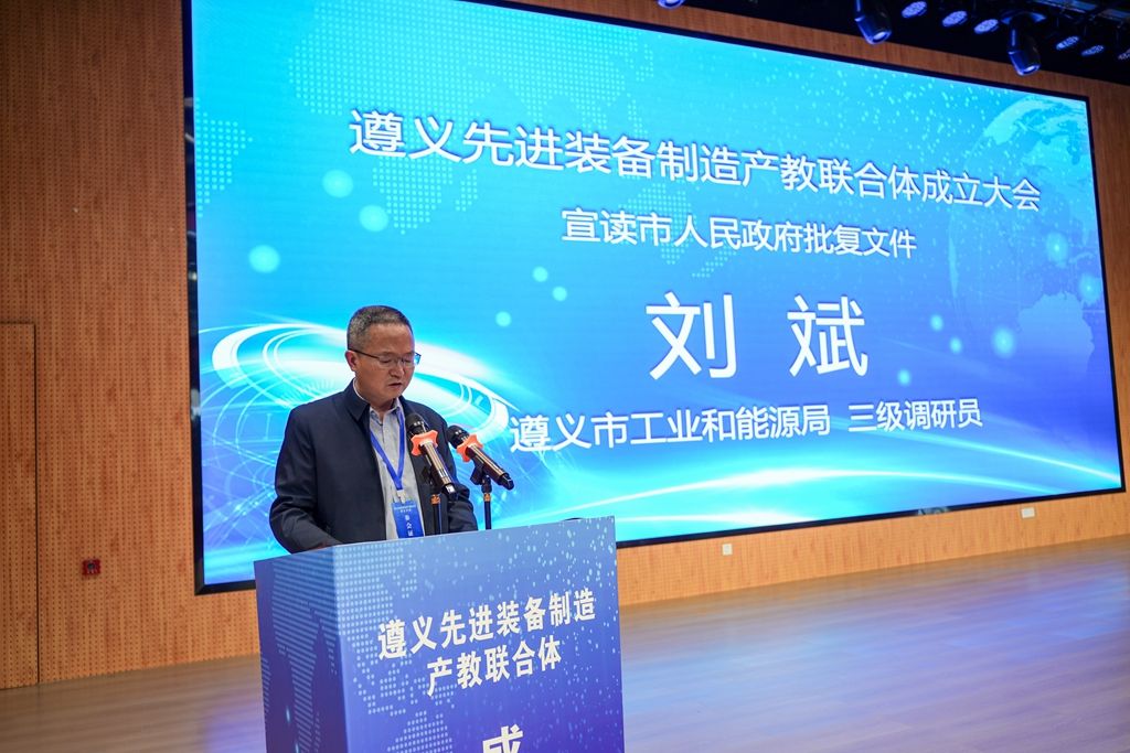 刘斌宣读遵义市人民政府《关于同意成立遵义先进装备制造产教联合体的批复》。