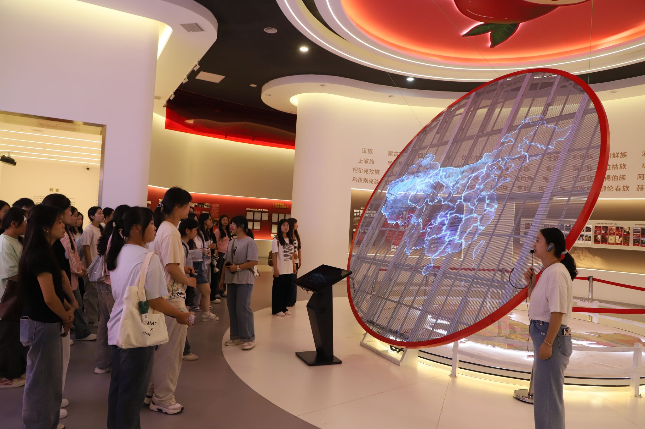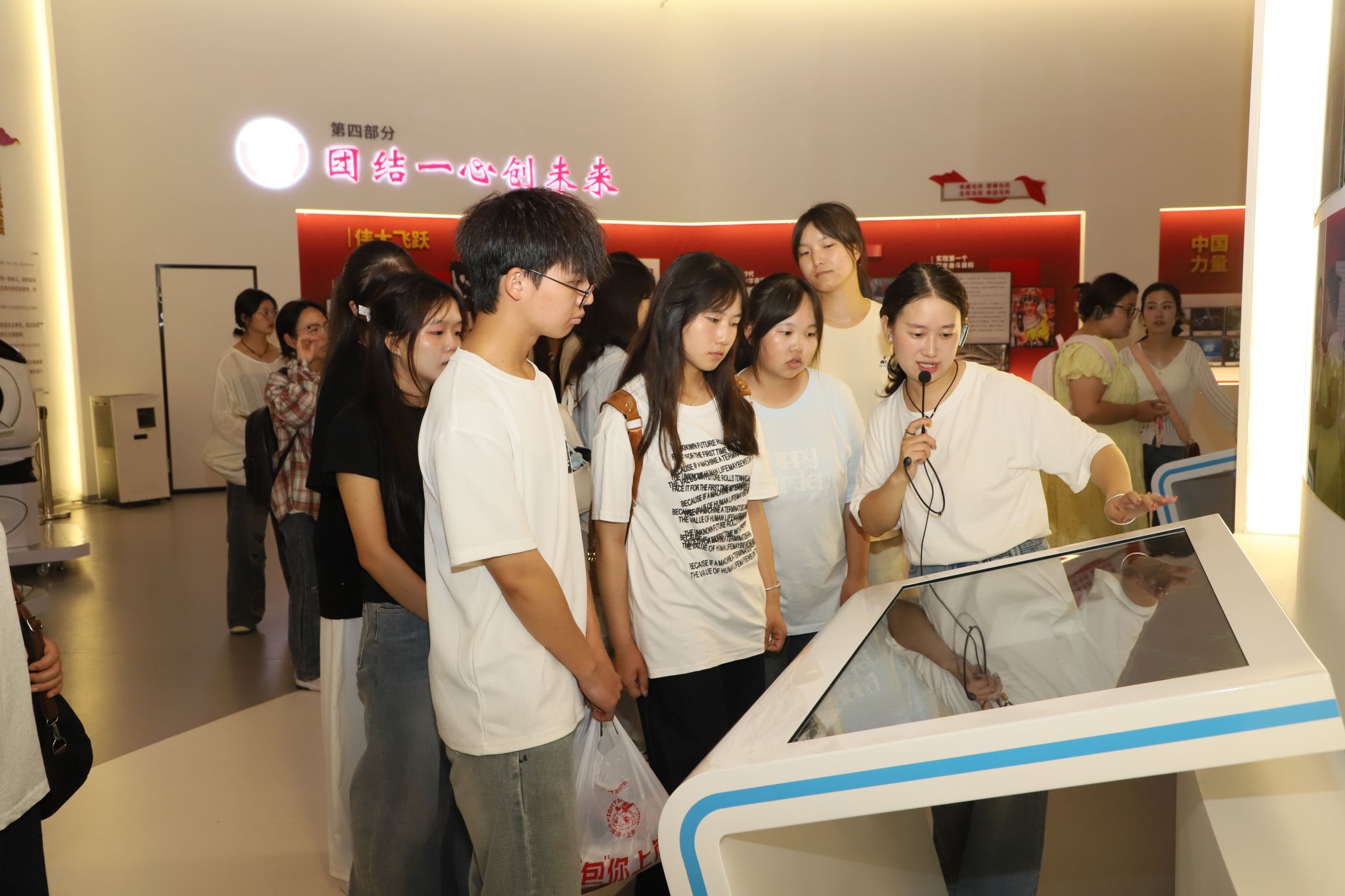 在参观过程中,同学们紧随讲解员的步伐,认真聆听、仔细观看、积极互动。从中华民族发展史到中国共产党带领各族人民共同奋斗的峥嵘岁月,从多彩贵州的民族风情到全国各族人民同心共筑中国梦的生动实践,一段段历史叙述、一件件实物模型、一幕幕场景再现,深深吸引了每一位同学的目光,引发了大家的深入思考和强烈共鸣。体验馆内专门设置的互动环节,让同学们在参与中切身感受到了中华文化的博大精深和各民族文化的丰富多彩,深刻理解了“汉族离不开少数民族,少数民族离不开汉族,各少数民族之间也相互离不开”的深刻内涵。