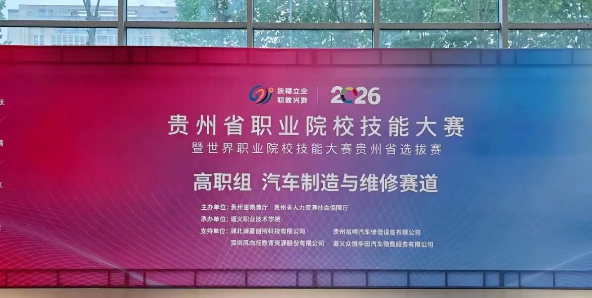 2026.044 月17日,2026 年贵州省职业院校技能大赛暨世界职业院校技能大赛贵州省选拔赛高职组汽车制造与维修赛道在我院开赛。来自全省28 所高职院校、70 余...