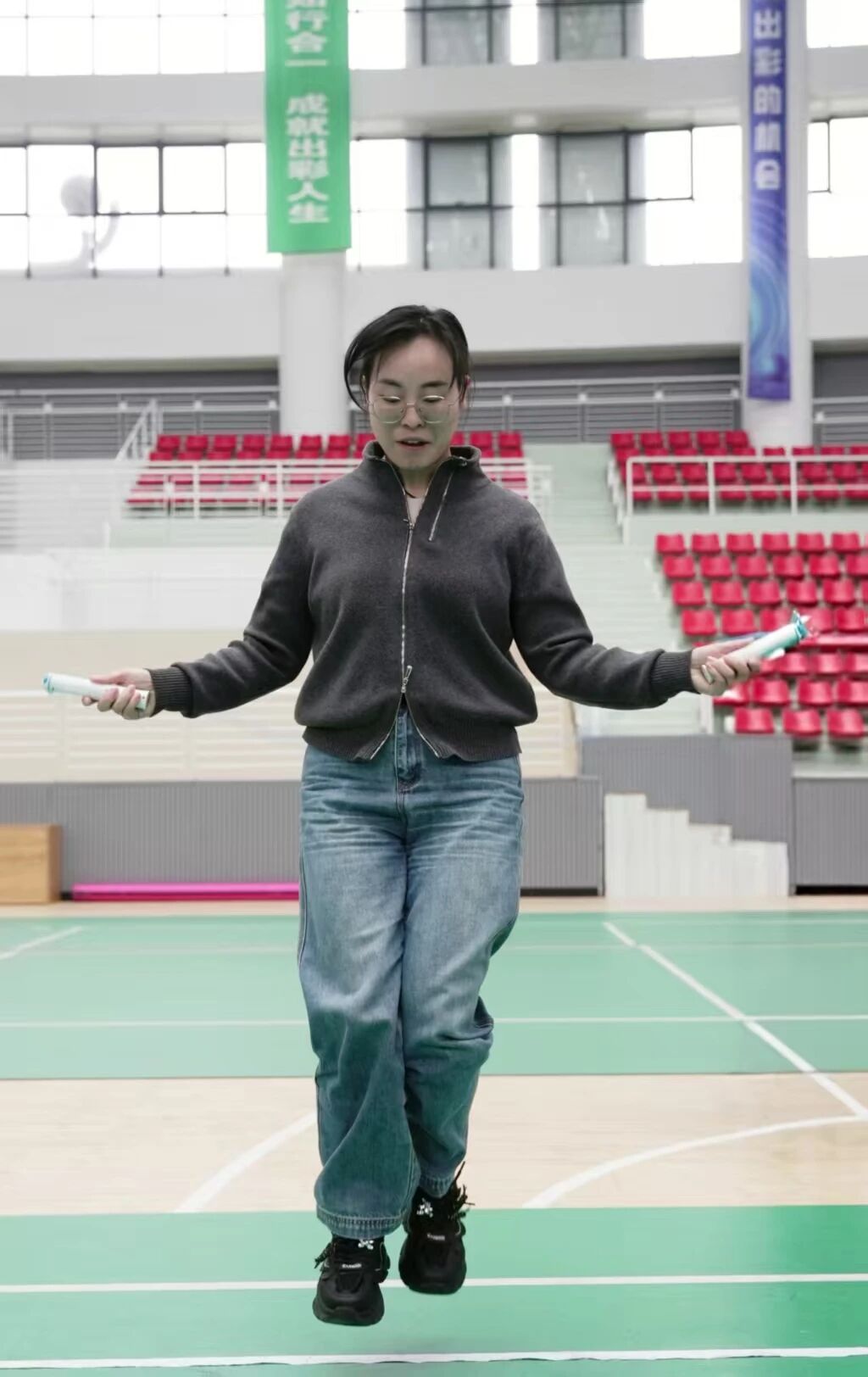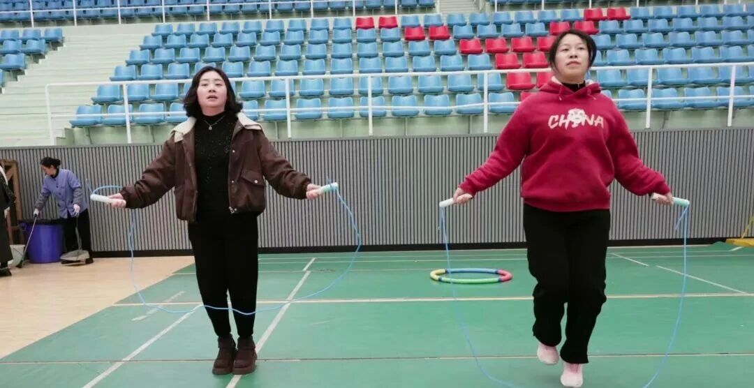 启动仪式后,“绳采飞扬·活力巾帼”趣味跳绳活动热闹开场。现场欢声笑语不断,女教职工们在轻松有趣的项目中舒展身姿、绽放笑颜,尽情享受着属于她们的欢乐时光。