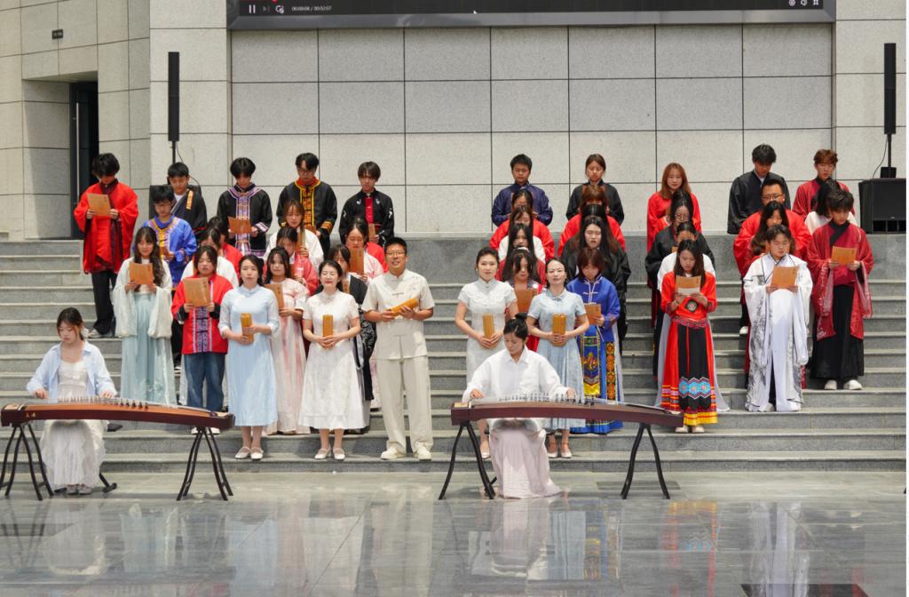 活动现场首先由基础教学部大学语文团队指导学生进行了《诗经》经典篇目的诵读和吟唱,在音韵流转中展示了中华文脉的源远流长,为活动开启了书香之旅。