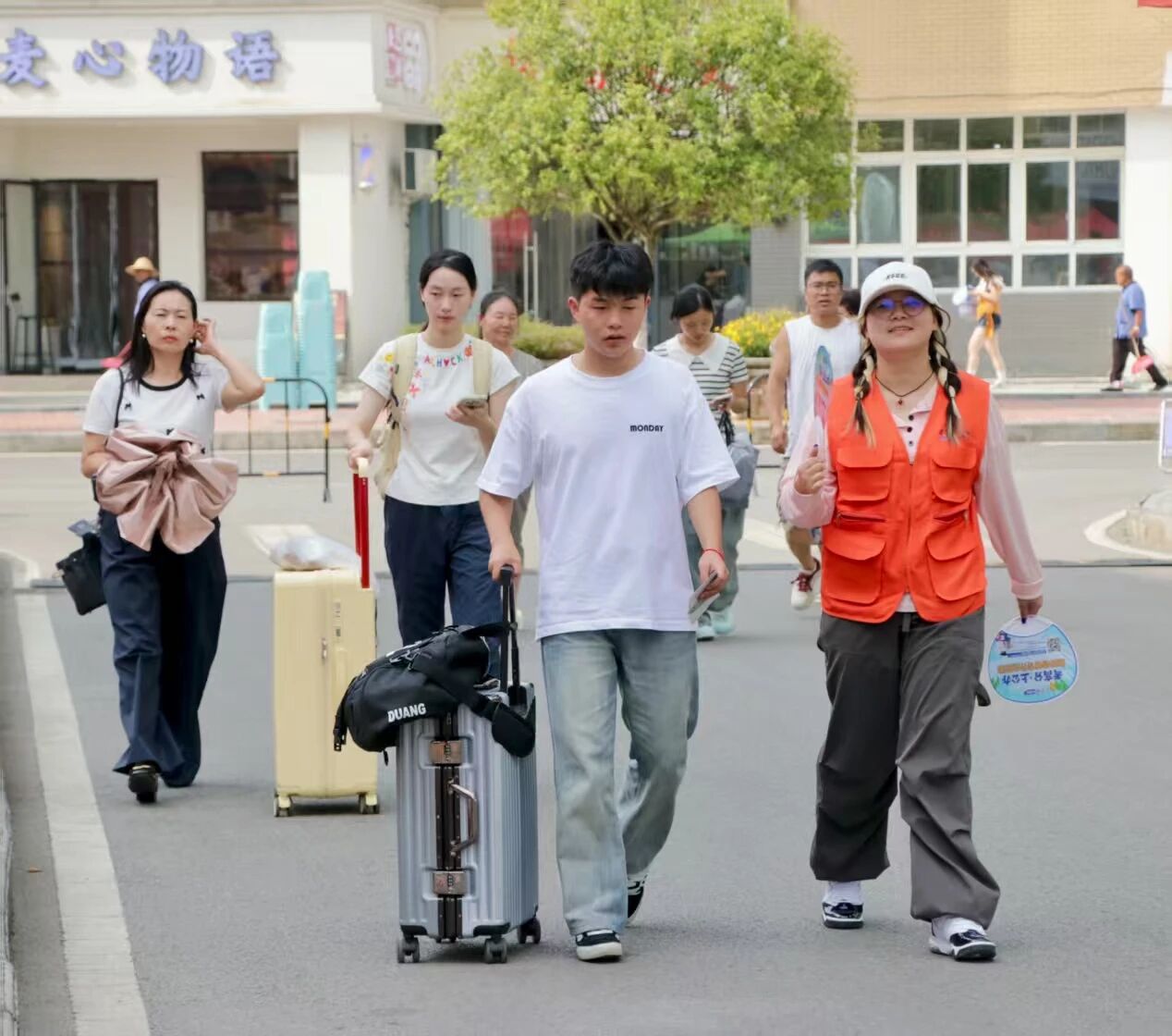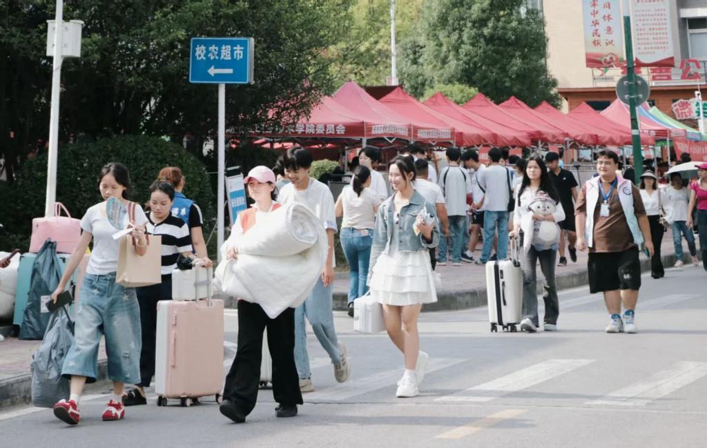 身着志愿者服的学长学姐手持欢迎牌,指尖轻抚展板,为每一双好奇的眼睛勾勒明天的轮廓。新生们倾身细听,眸中映出远方;那是一场无需言语的传承,是青春与梦想的轻轻相拥。他们接过一份份行李,将嘱咐藏进初凉的秋风,仿佛把信念种进待萌的土壤。