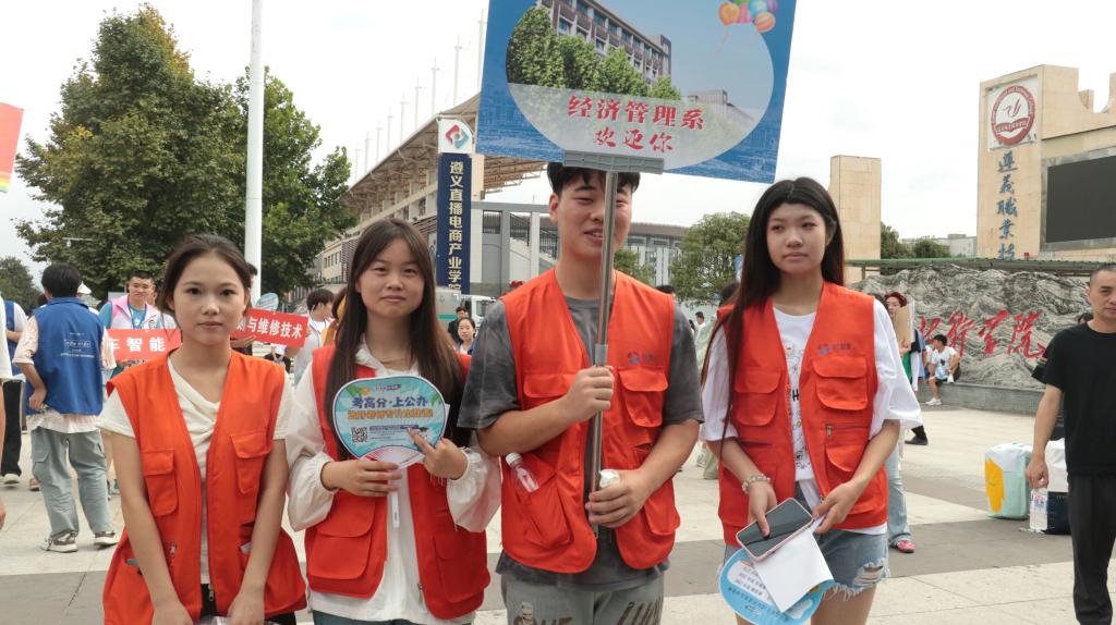 他们背着行囊,举起手机捕捉绿意未褪的校园,欢快的交谈声惊动了枝头初绽的桂花—— 这是2025年的初秋,是遵职与他们的初次相见,是陌生与希望在微风中共舞的时刻。