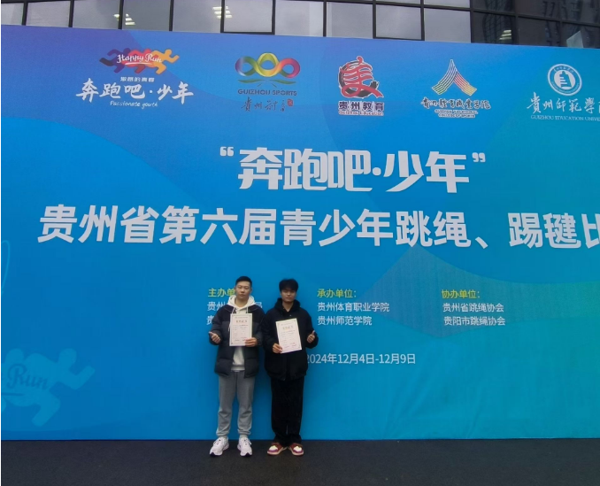 近日,我院在2024年“奔跑吧·少年”贵州省第六届青少年跳绳、踢毽比赛中取得优异成绩。此次赛事由贵州省体育局与省教育厅联合主办,吸引了302支队伍、3400余名选手参与同场竞技。我院首次组队参赛,参与了四个小项的角逐,展现了我院学子的风采。