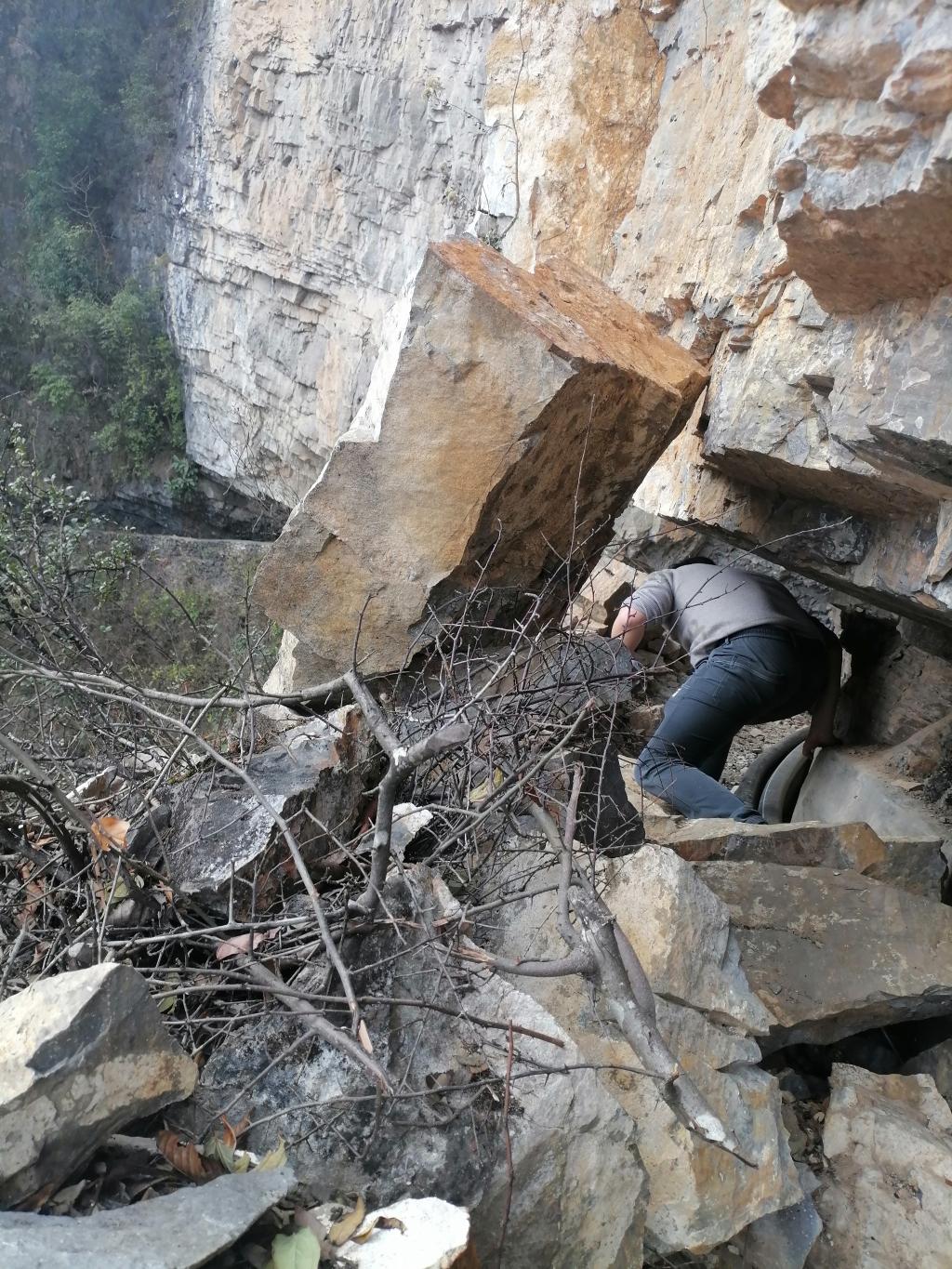 为从根本上破解用水难题,团队不畏艰险、翻山越岭,在悬崖峭壁间探寻天然水源脉络。沿途崖壁垂直超百米,岩石松动时有垮塌,危险重重。队员们当天徒步16公里,攀险峰、涉溪流、勘地貌,以建筑专业的严谨细致标记水流走向、勘测水源储量。此次勘探成功锁定稳定水源,建成后可彻底解决5个村民组、4000余名群众的安全饮水问题,让村民告别“靠泵吃水”的困境。