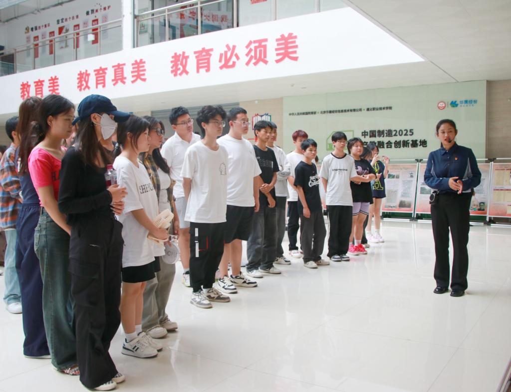 展览现场,师生们驻足观看,认真聆听讲解员的介绍。