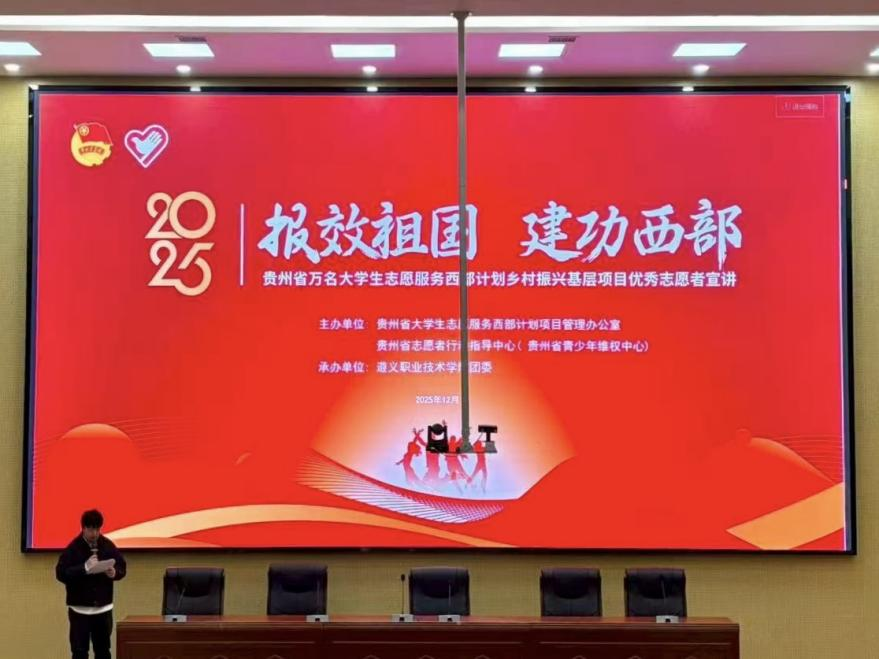 12月10日上午9:30-10:30,知行楼学术报告厅内掌声不断,2025年贵州省西部计划优秀志愿者事迹宣讲会顺利结束,三位青年榜样用实干故事诠释了志愿担当。