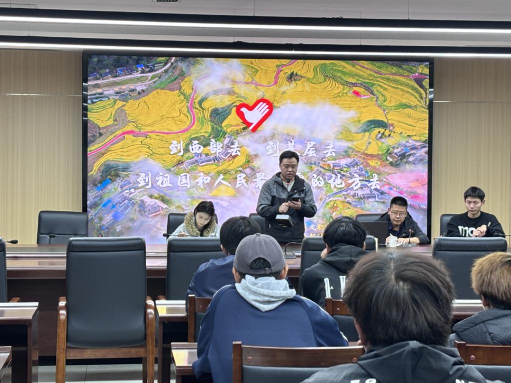 在讲座中,孔涛为同学们讲述了他在余庆县大乌江镇红渡村三年的工作经历,分享了自己的工作心得、志愿初心和奉献基层的收获,并且详细解读了“西部计划”的政策背景、招募条件、服务领域和保障措施,鼓励更多青年学子加入“西部计划”,让青春之花在祖国和人民最需要的地方不断绽放。