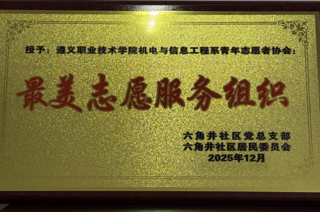近日,我院机电与信息工程系青年志愿者协会获社区"最美志愿服务组织"荣誉称号。
